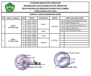 Giat Ujian Madrasah (UM) Kelas Akhir MA Bidayatul Hidayah Tahun 2026