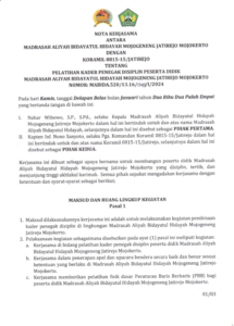 2. Pelatihan Kedisiplinan Peserta Didik (PKPD) oleh KORAMIL Jatirejo Bekerjasama dengan MA Bidayatul Hidayah Mojogeneng Jatirejo Mojokerto untuk Meningkatkan Kedisiplinan Peserta Didik dan Tenaga Pendidik MA Bidayatul Hidayah Mojogeneng Jatirejo Mojokerto.
