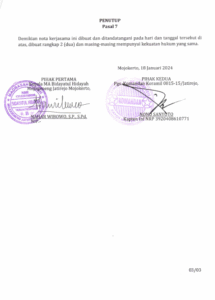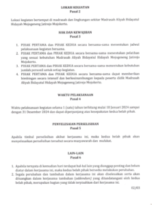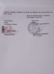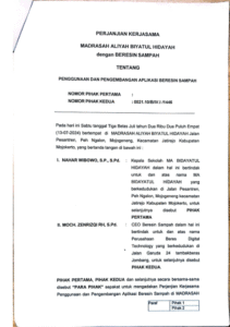 5.Surat Perjanjian Kerjasama Antara MA Bidayatul Hidayah Mojogeneng dengan Beresin Sampah Kabupaten Mojokerto yang dilaksanakan sebagai bentuk MABIDA peduli lingkungan bersih, nyaman dan asri.