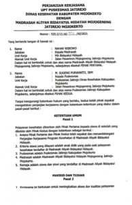 4.Surat Perjanjian Kerjasama Antara MA Bidayatul Hidayah Mojogeneng Jatirejo Mojokerto dengan Sekolah Tinggi Ilmu Kesehatan Dian Husada Mojokerto yang Dilaksanakan dalam rangka Untuk Penerapan Pendidikan Kesehatan dan Pembinaan Lingkungan Madrasah Sehat.